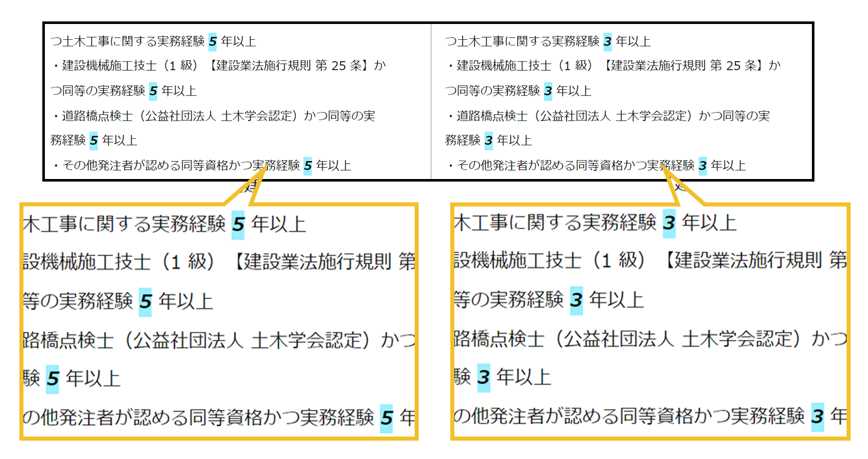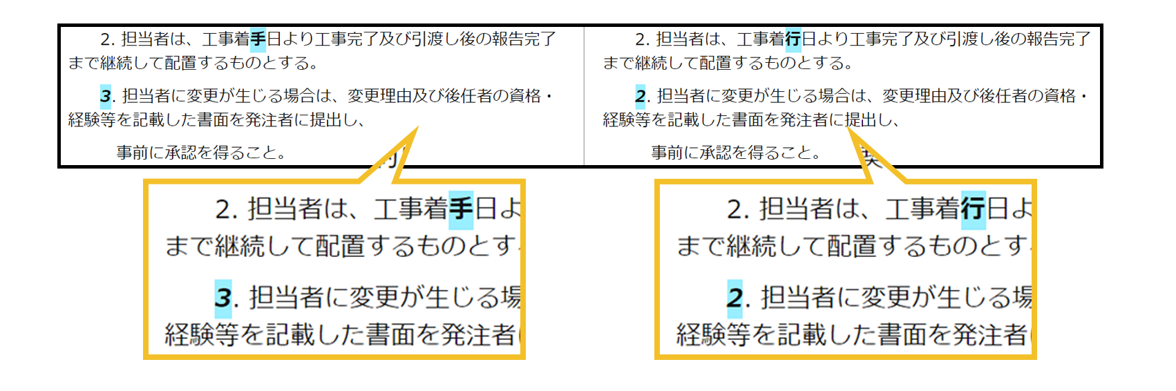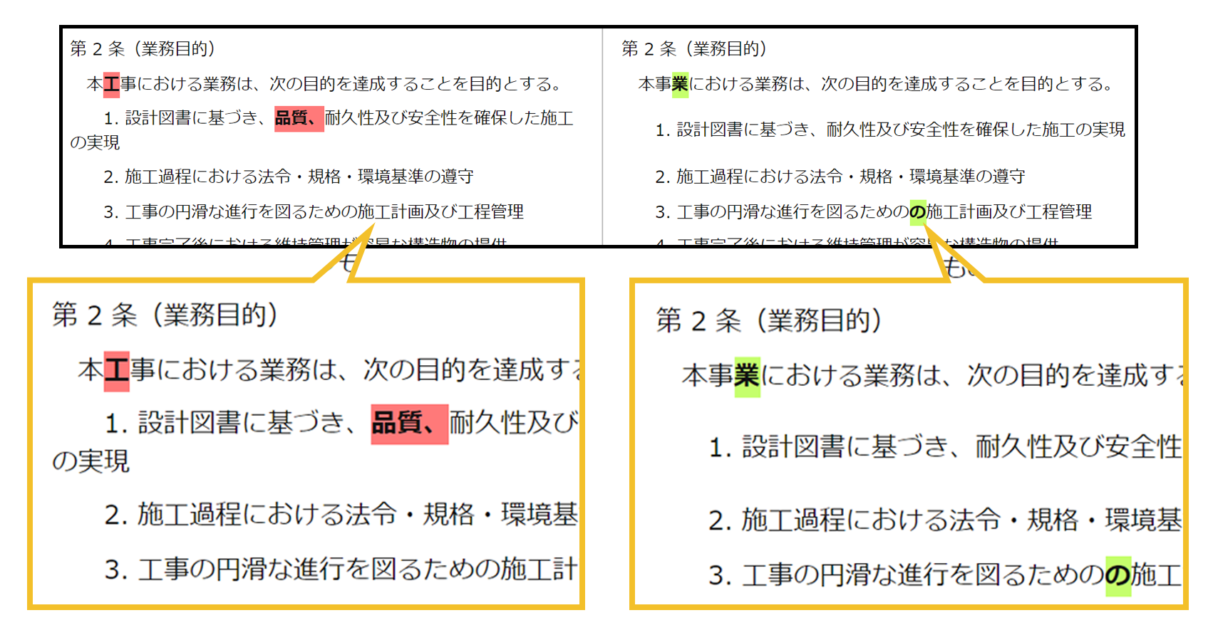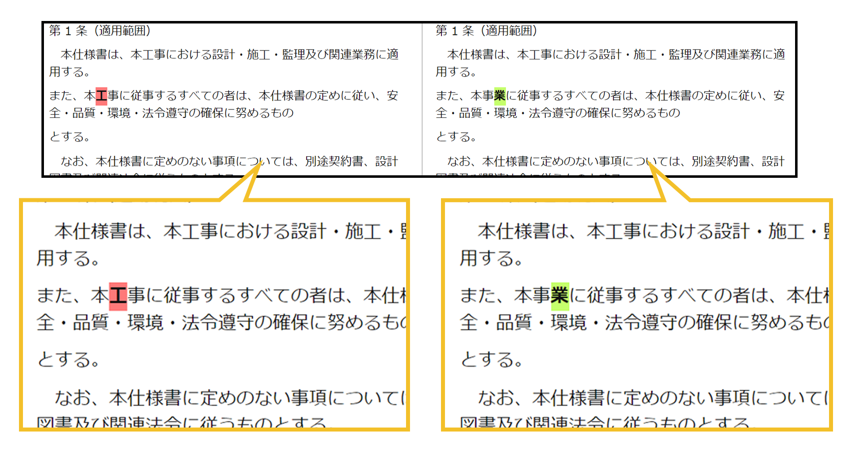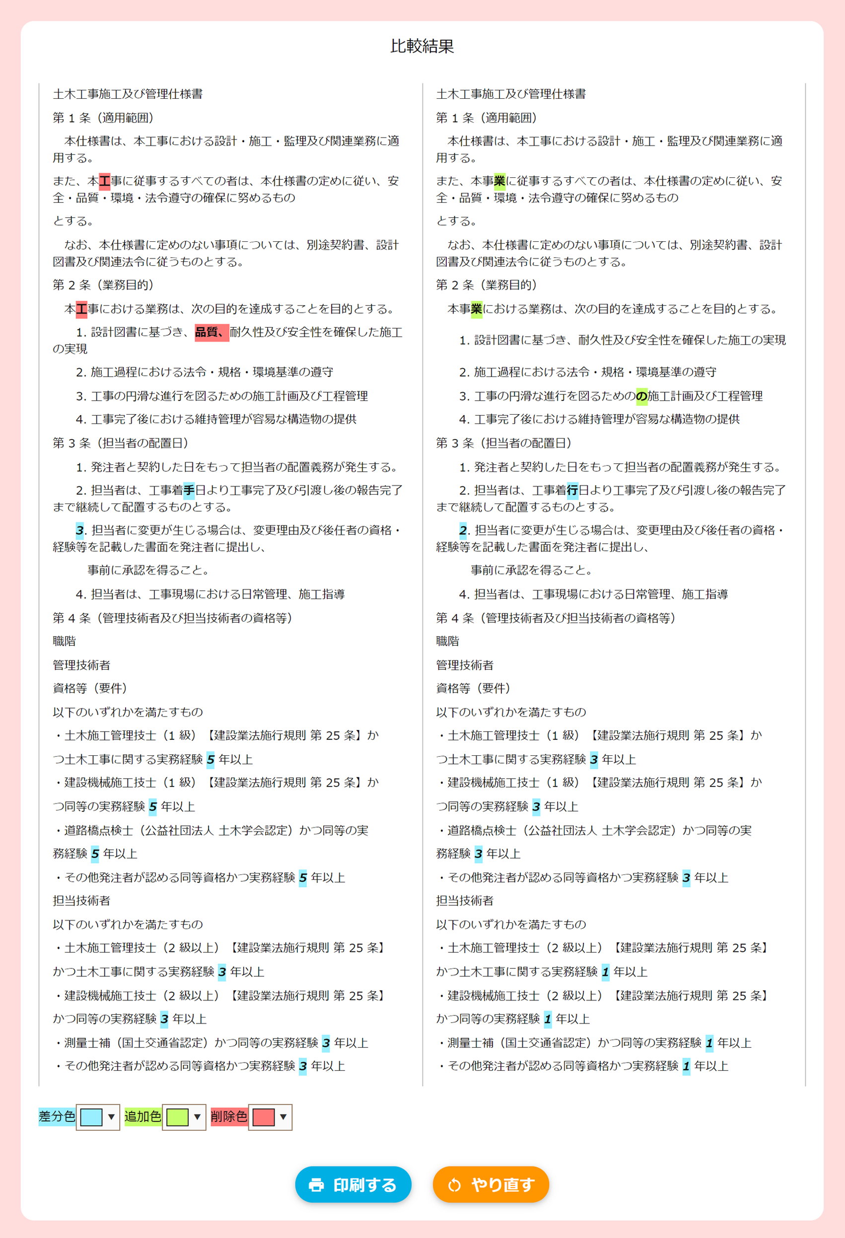 AとBで差がある場合、その内容が色付きで表示されます。